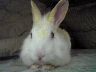 生後、おそらく7ヶ月くらいにはなる、白いうさぎさん。体重ももう1800gあります。