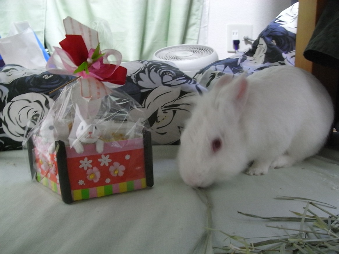 ちょっとしたら、お雛様うさぎの存在にも慣れたらしく牧草食べ始めるし(笑)