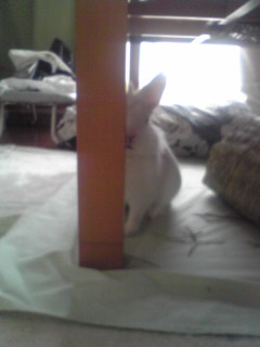 このあと座卓足に頭を付けて、うさまんじゅう座りをしていたんですが