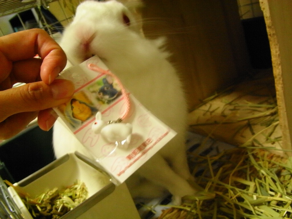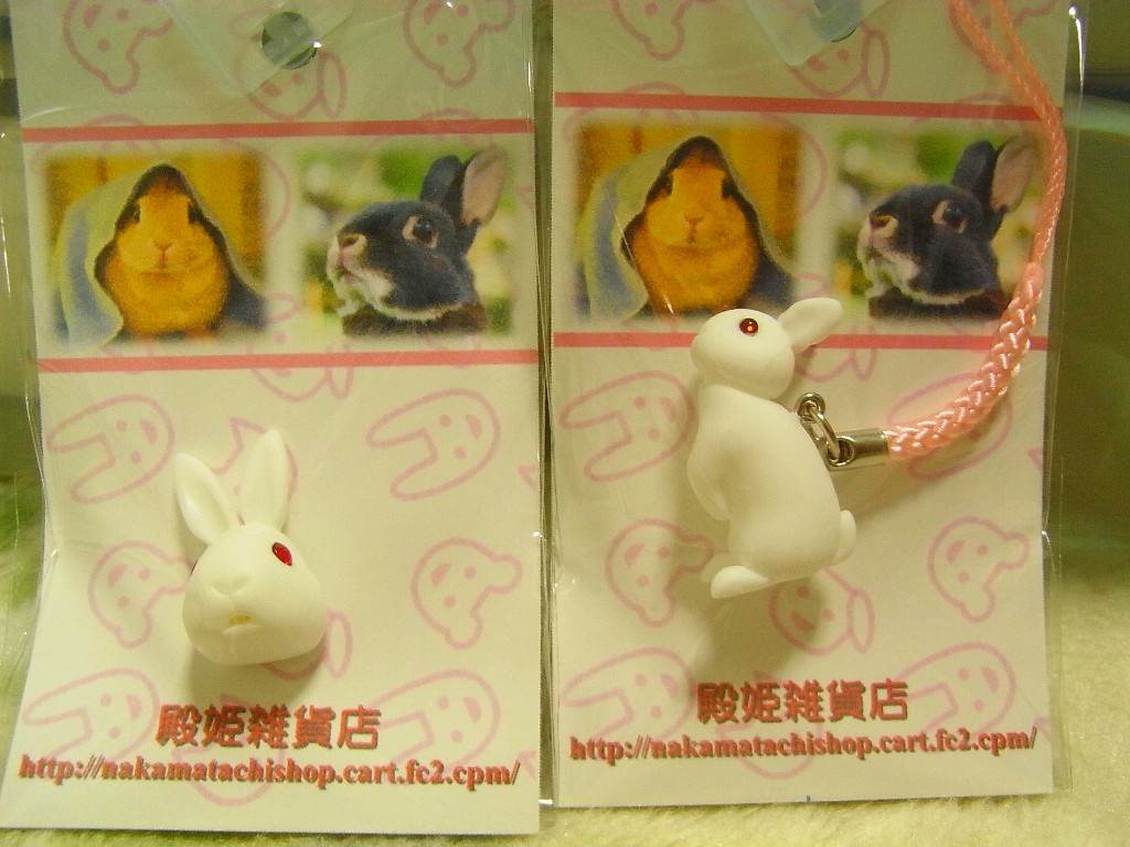 ゲットした作品、たち耳しろうさぎさんのマグネット!! そしてストラップ!目が赤い子がいたのです!