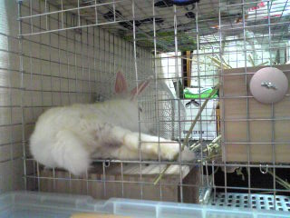 先週くらい? ケージ内ロフトでごろんちょしている姿を、小窓あけて後ろから