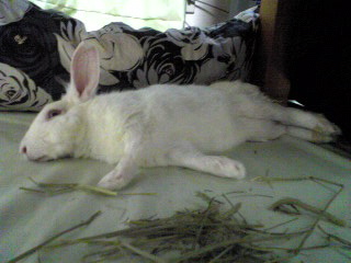 白目をむいて、お鼻から口元はもはやウサギではありません。。。