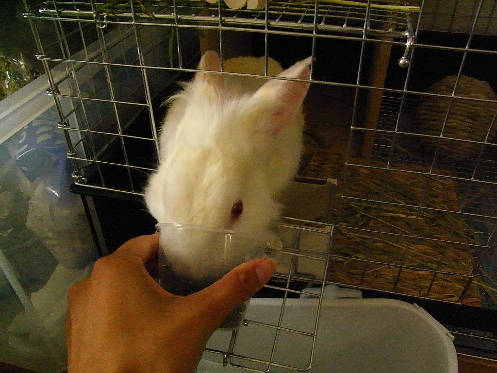 ペレットをあげるまえに小松菜とリンゴをあげたら大喜びです。